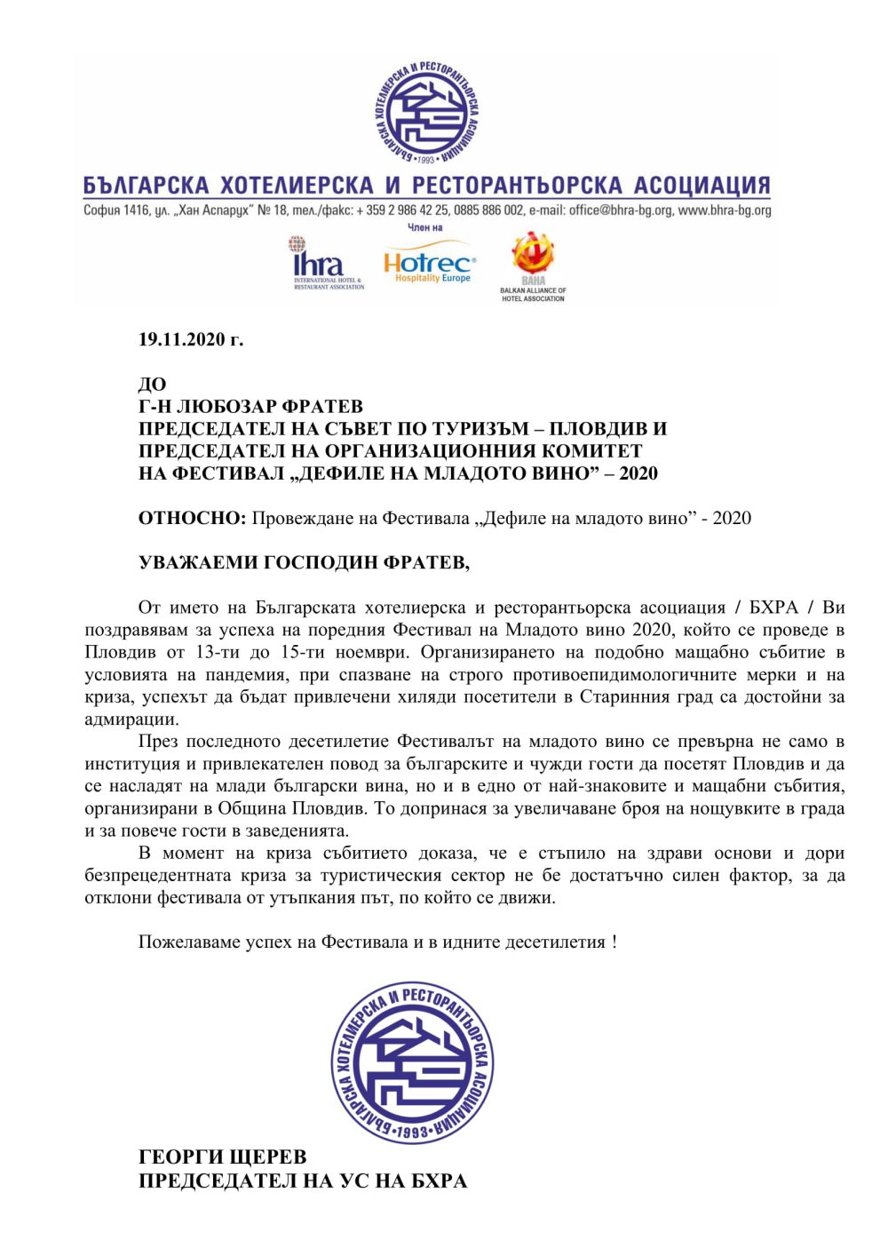 Автор: wineshow - Дата: ноември 20, 2020 Поздравителен адрес от БХРА "Дефиле на младото вино" 2020 Сподели < Предишна публикация Следваща публикация >